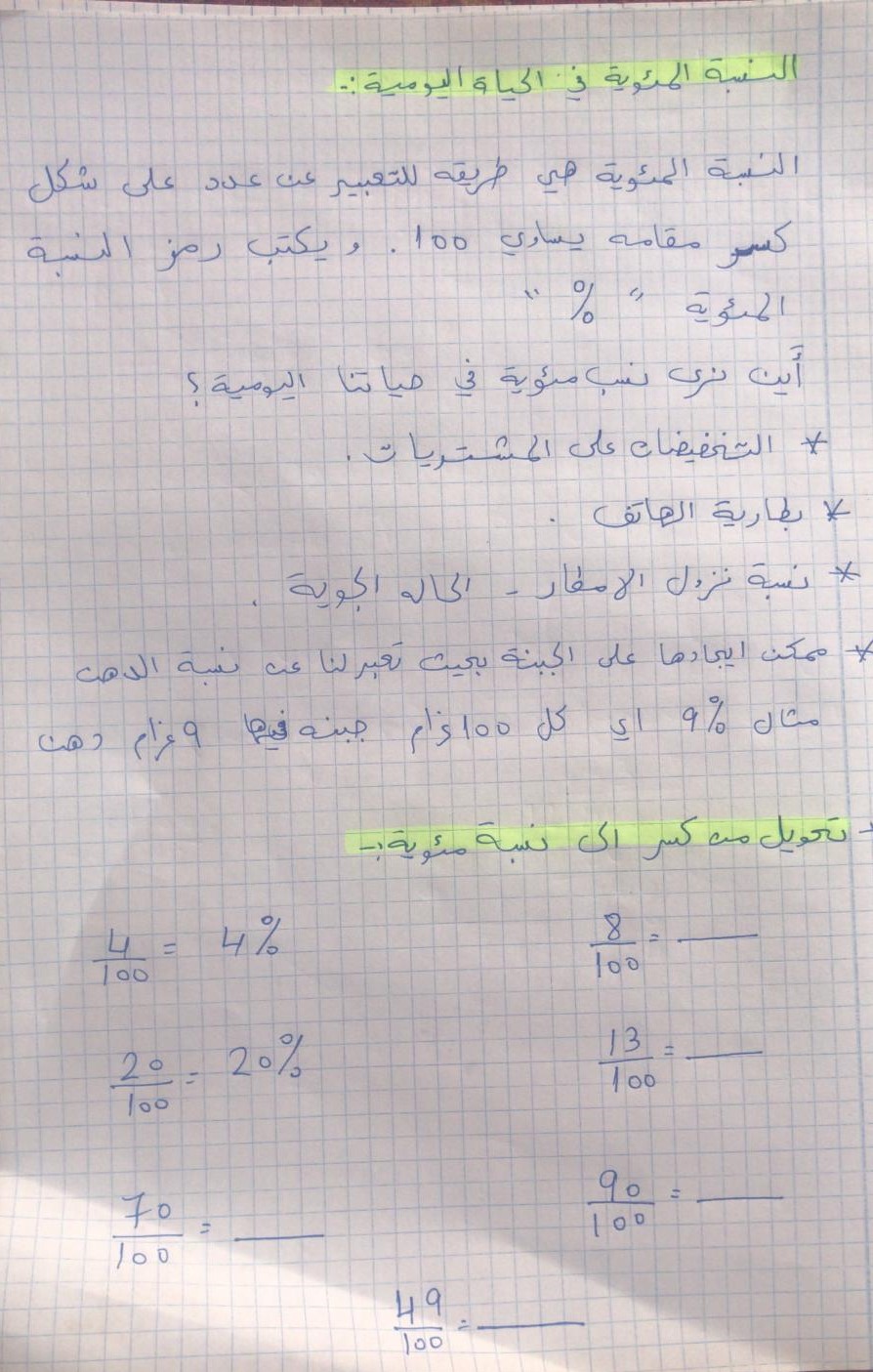 تحويل كسر مقامه ليس 100 الى نسبه مئويه